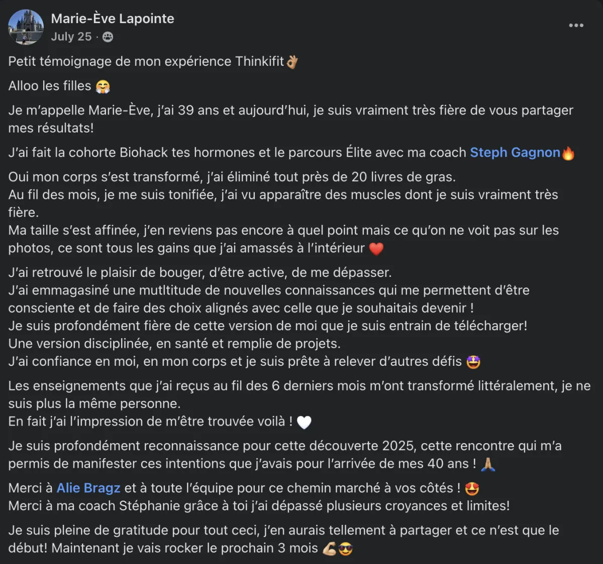 Alie Bragz est une spécialiste du biohacking féminin et de la santé hormonale. Fondatrice de Thinkifit et BioFit, elle accompagne depuis plus de dix ans des milliers de femmes à retrouver énergie, équilibre hormonal et confiance.